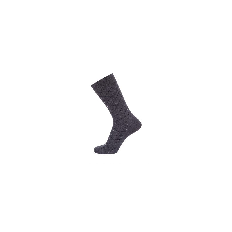 Grå bambus strømper, med et flot og raffineret design. Denne strømpe har et flot design med hvide prikker og en raffineret brun streg. Det giver en flot og eksklusiv herrestrømpe.