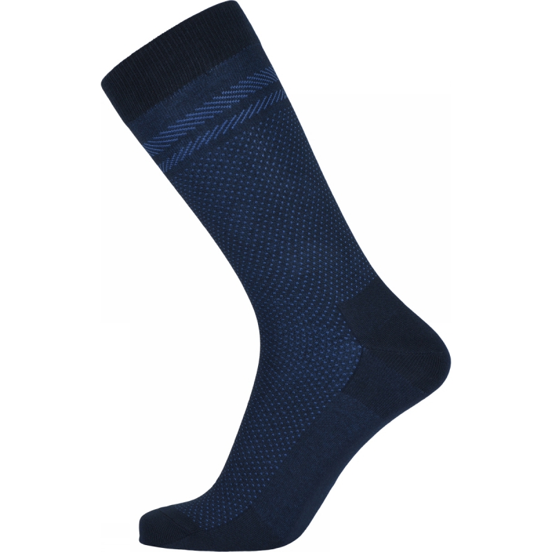 Super lækker bambus strømpe i en flot blå nuance, hvor der givet liv til med et flot vævet mønster. Det er en rigtig lækker og flot designet herrestrømpe.