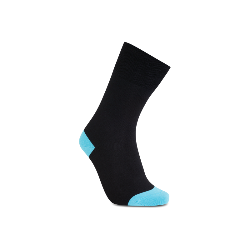 Lækre bambus strømper med farvet hæl og tå i turkis.