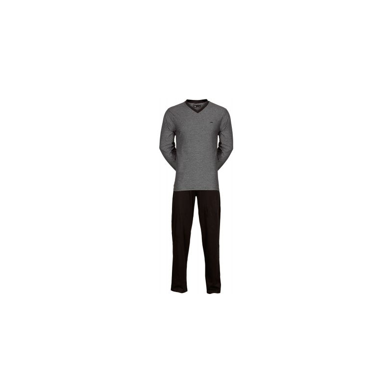 Jersey pyjamas sæt i grå top og sorte bukser med flotte detaljer