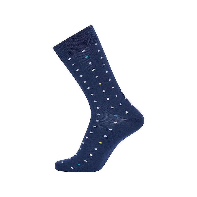 Denne flotte navy-blå herrestrømpe i kombination med prikker i en række spændende farver giver et fedt look som helhed. Flot design fra JBS, hvor kvaliteten scorer absolut topkarakter.