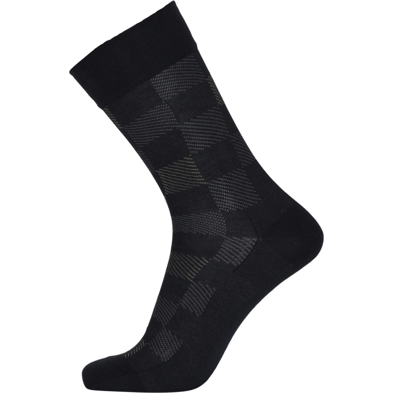 Egtved bomuldsstrømper i sort med firkantet mønster uden elastik til herre