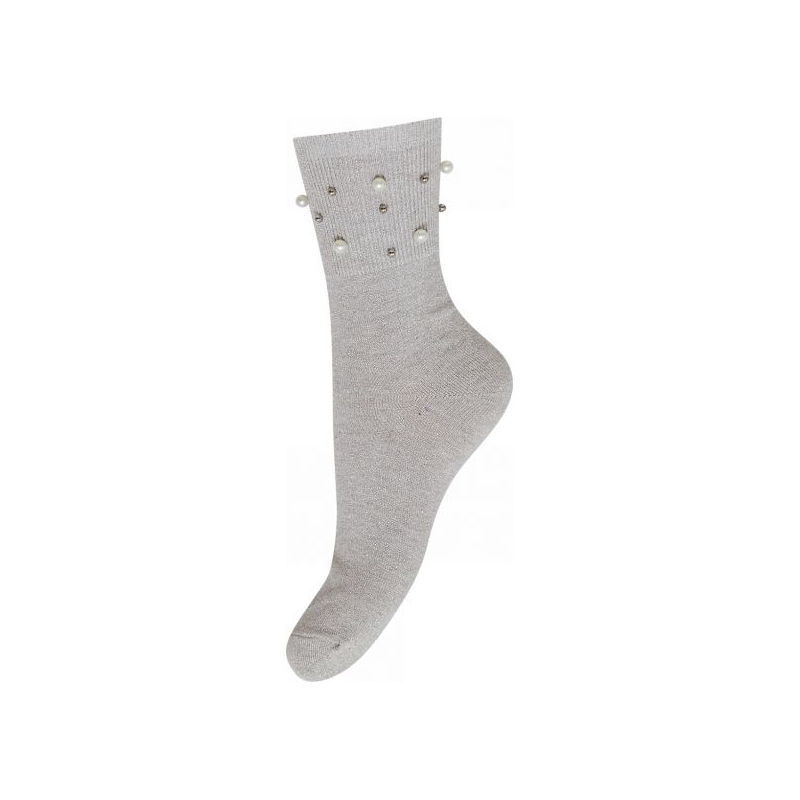 Rigtig lækker og sød glimmer strømper i Beige med perler. Den giver helt sikkert et pift til dit outfit, og er behagelig mod fødderne med sit høje indhold af bomuld.