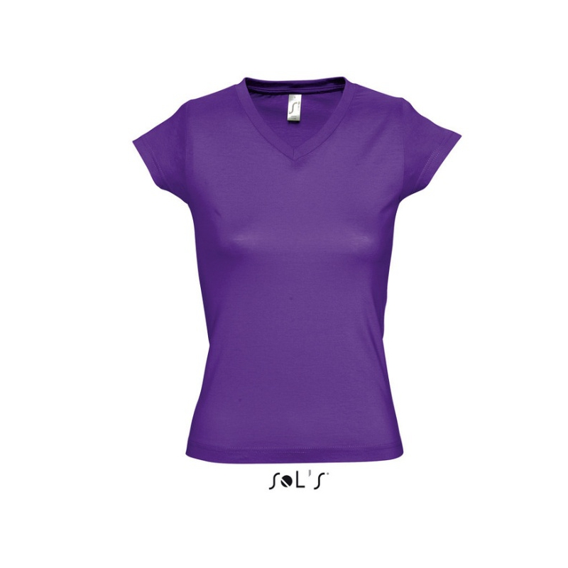 Lækker flot lilla V-hals T-shirt til kvinder. Denne Trendy T-shirt er en såkaldt dyb V-Hals T-shirt i en rigtig lækker kvalitet fra Sols.