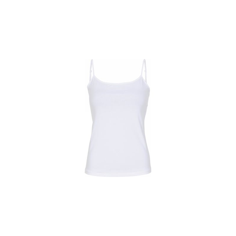 En basistop af en lækker kvalitet er uundværlig i hverdagsgarderoben. Denne lette, bløde sag med tynde stropper er fremstillet af 95 % og 5 % elastan - en kombination, der giver maksimal blødhed og komfort samt en perfekt pasform, der holder, selvom du bruger toppen igen og igen. Som det gælder for alle vores styles, er der ingen generende mærker; dem har vi printet direkte på stoffet, så de ikke klør og irriterer huden.