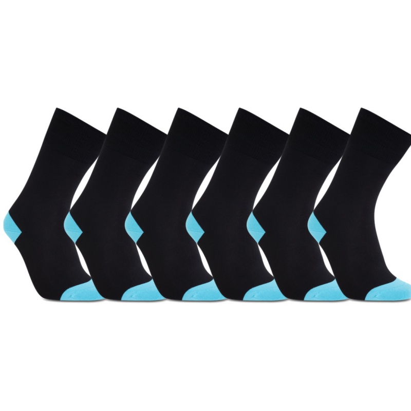 Lækre 6pak bambus strømper med turkis farvet hæl og tå.